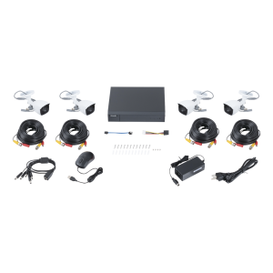 KIT TurboHD 1080p / DVR 4 canales / 4 Cámaras Bala de Metal / H.265+ / 1 Fuente de Poder Profesional / Accesorios de Instalación