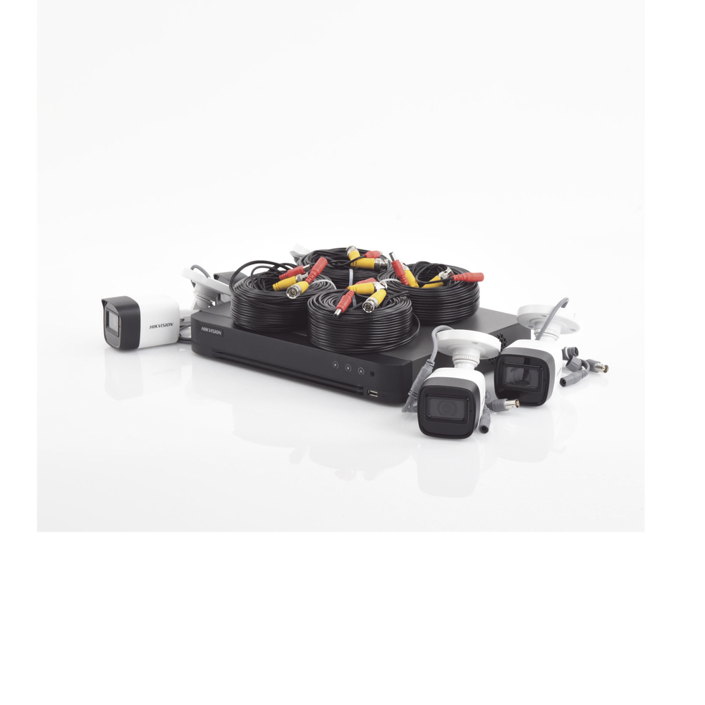 KIT TURBOHD 5MP / DVR 4 Canales / 4 Cámaras Bala con Micrófono Integrado (exterior 2.8 mm) / Fuente de Poder / Accesorios de Instalación