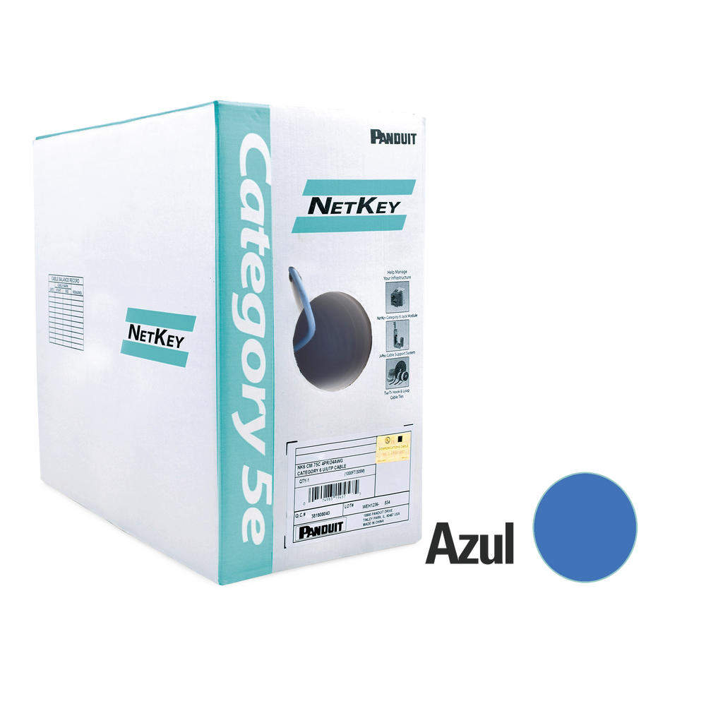 Bobina de cable UTP 305 m. de Cobre, NetKey, Azul, Categoría 5e (24 AWG), PVC (CM), de 4 pares